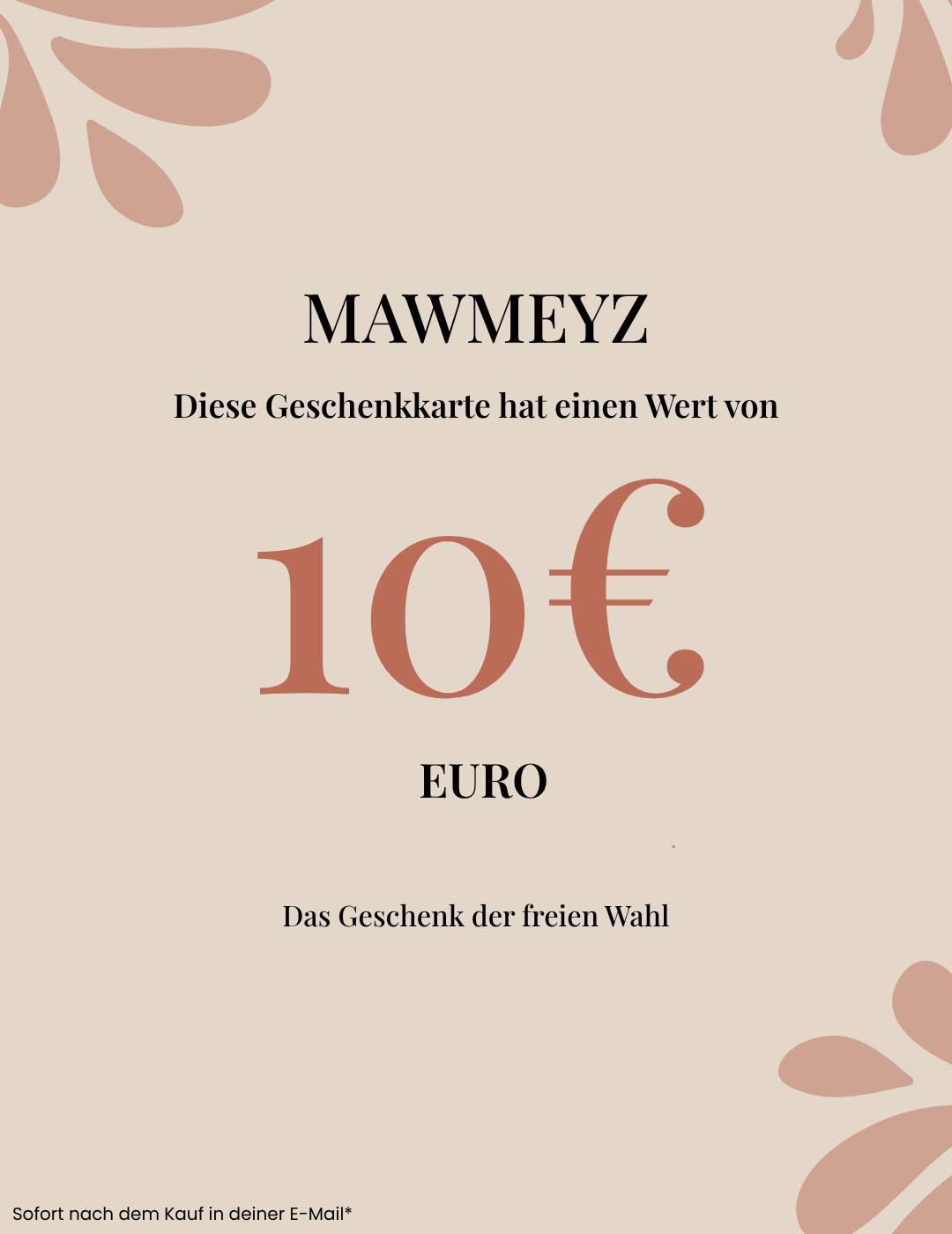 Du möchtest einer werdenden oder frischgebackenen Mama eine besondere Freude machen, bist aber unsicher, was sie wirklich braucht? Unsere MAWMEYZ Geschenkkarte ist die liebevollste Antwort. Damit liegst du garantiert immer richtig und schenkst pure Unterstützung, ganz ohne Stress. Gib ihr die Freiheit, selbst zu entscheiden, was ihr und ihrem Baby in diesem Moment am besten guttut. Es ist mehr als nur ein Gutschein – es ist eine Geste, die sagt: "Ich denke an dich und bin für dich da." Die digitale Geschenkkarte kommt sofort nach dem Kauf per E-Mail und kann direkt im Shop eingelöst werden. Ein Geschenk voller Wärme, Fürsorge und freier Wahl.