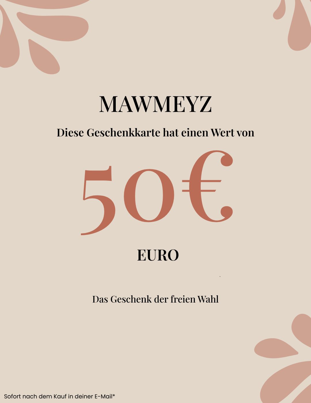 Du möchtest einer werdenden oder frischgebackenen Mama eine besondere Freude machen, bist aber unsicher, was sie wirklich braucht? Unsere MAWMEYZ Geschenkkarte ist die liebevollste Antwort. Damit liegst du garantiert immer richtig und schenkst pure Unterstützung, ganz ohne Stress. Gib ihr die Freiheit, selbst zu entscheiden, was ihr und ihrem Baby in diesem Moment am besten guttut. Es ist mehr als nur ein Gutschein – es ist eine Geste, die sagt: "Ich denke an dich und bin für dich da." Die digitale Geschenkkarte kommt sofort nach dem Kauf per E-Mail und kann direkt im Shop eingelöst werden. Ein Geschenk voller Wärme, Fürsorge und freier Wahl.
