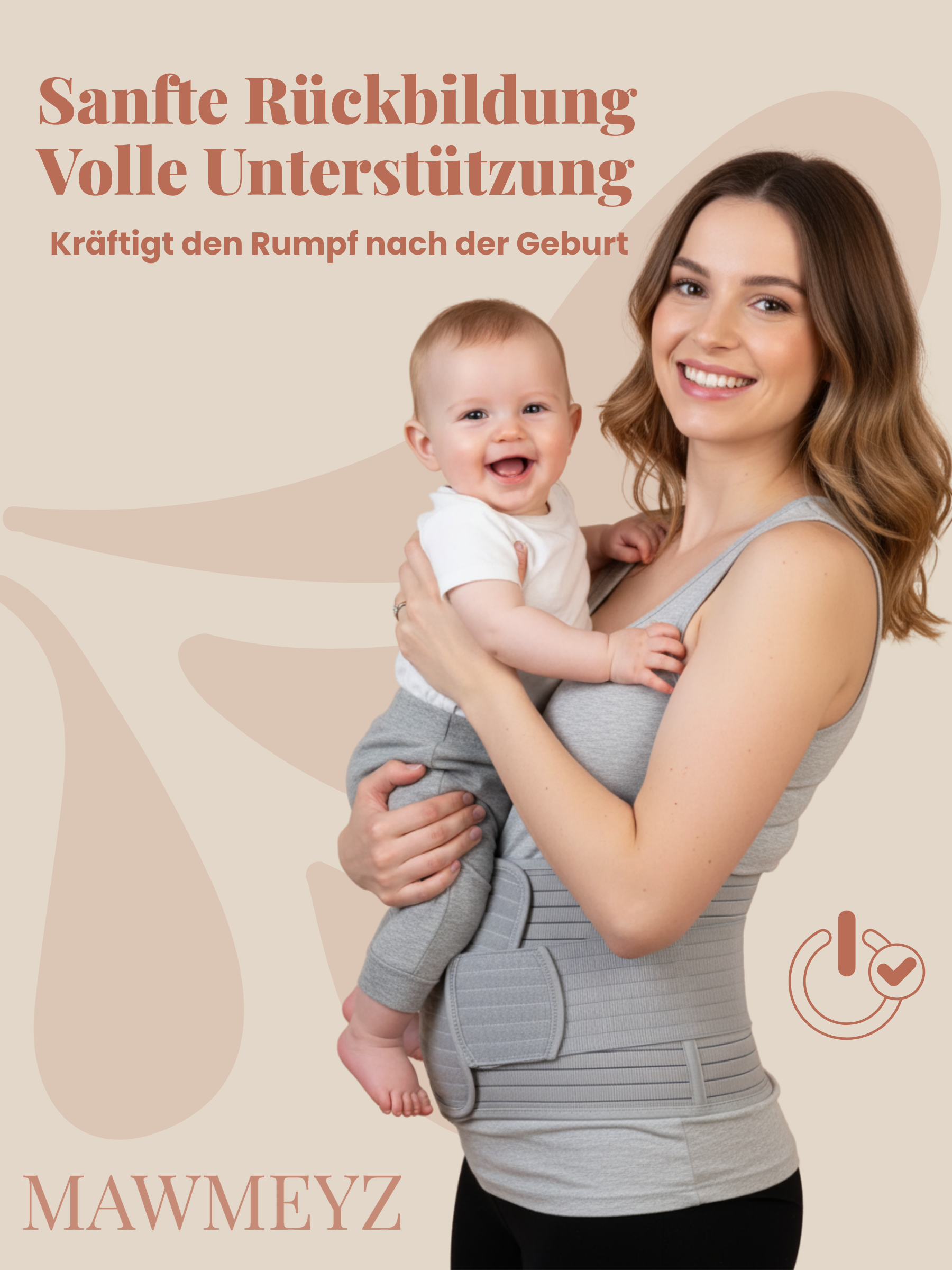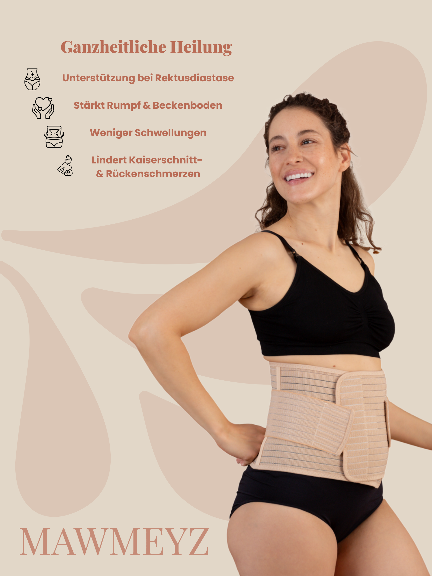 Von Müttern geliebt, von Fachleuten empfohlen: Das MAWMEYZ Postpartalstützband wurde entwickelt, um Körper und Haltung nach der Geburt gezielt zu stabilisieren – ohne Druck, nur mit spürbarer Entlastung.